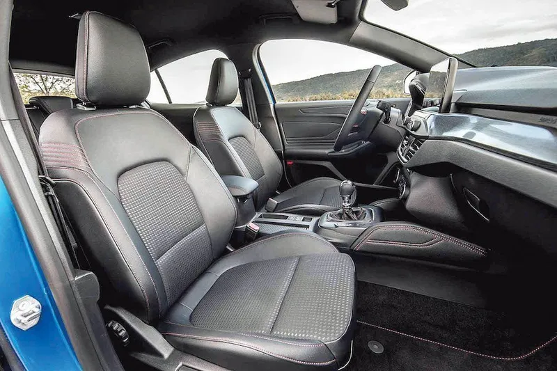 Ergonomia noii planșe de bord este la cote maxime. Iar arhitectura simplă, fără multe butoane și butonașe, merită salutată, fiind un pas enorm față de vechea generație. În contrapartidă, însă, volanul s-a umplut de taste. Sunt ușor accesibile, dar necesită ceva timp de adaptare. Poziția la volan este bună și, cel puțin în cazul echipării ST Line, scaunele față oferă suportul lateral necesar unui stil de condus dinamic.