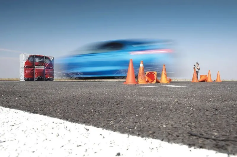 Tragi cât poți de tare de volan pentru a evita un obstacol și sistemul Evasive Steering Assist te ține pe drum