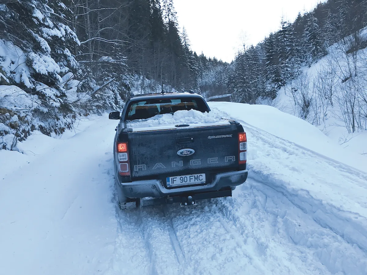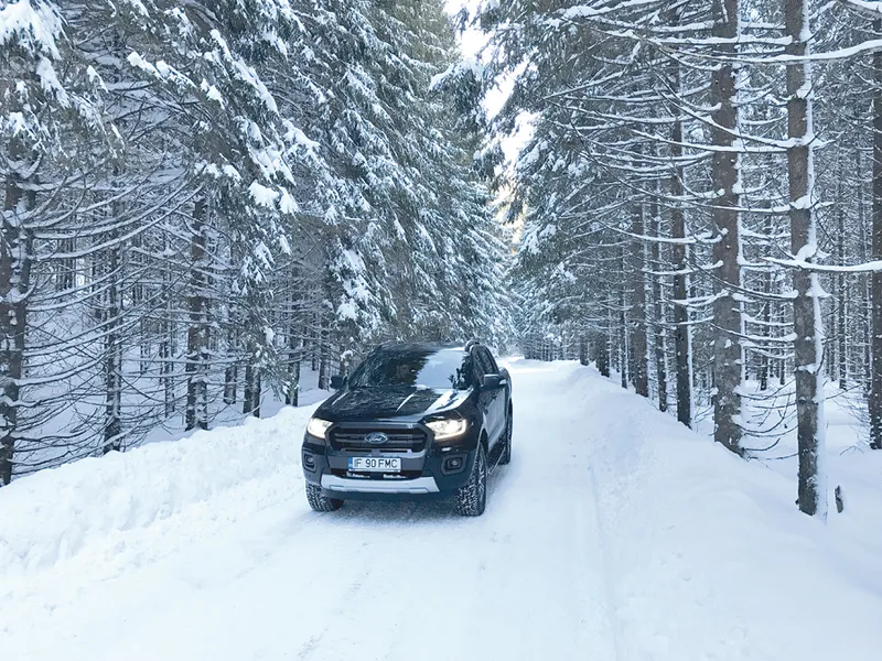Cu un vuiet plăcut de V6, Wildtrak-ul s-a pus în mișcare și am mai reușit să mai înaintăm câteva sute de metri, până la un sul de zăpadă viscolită.