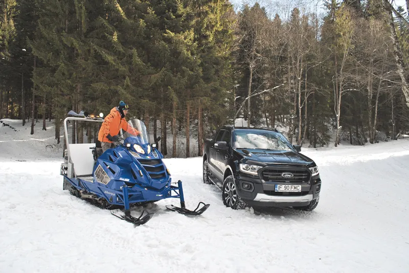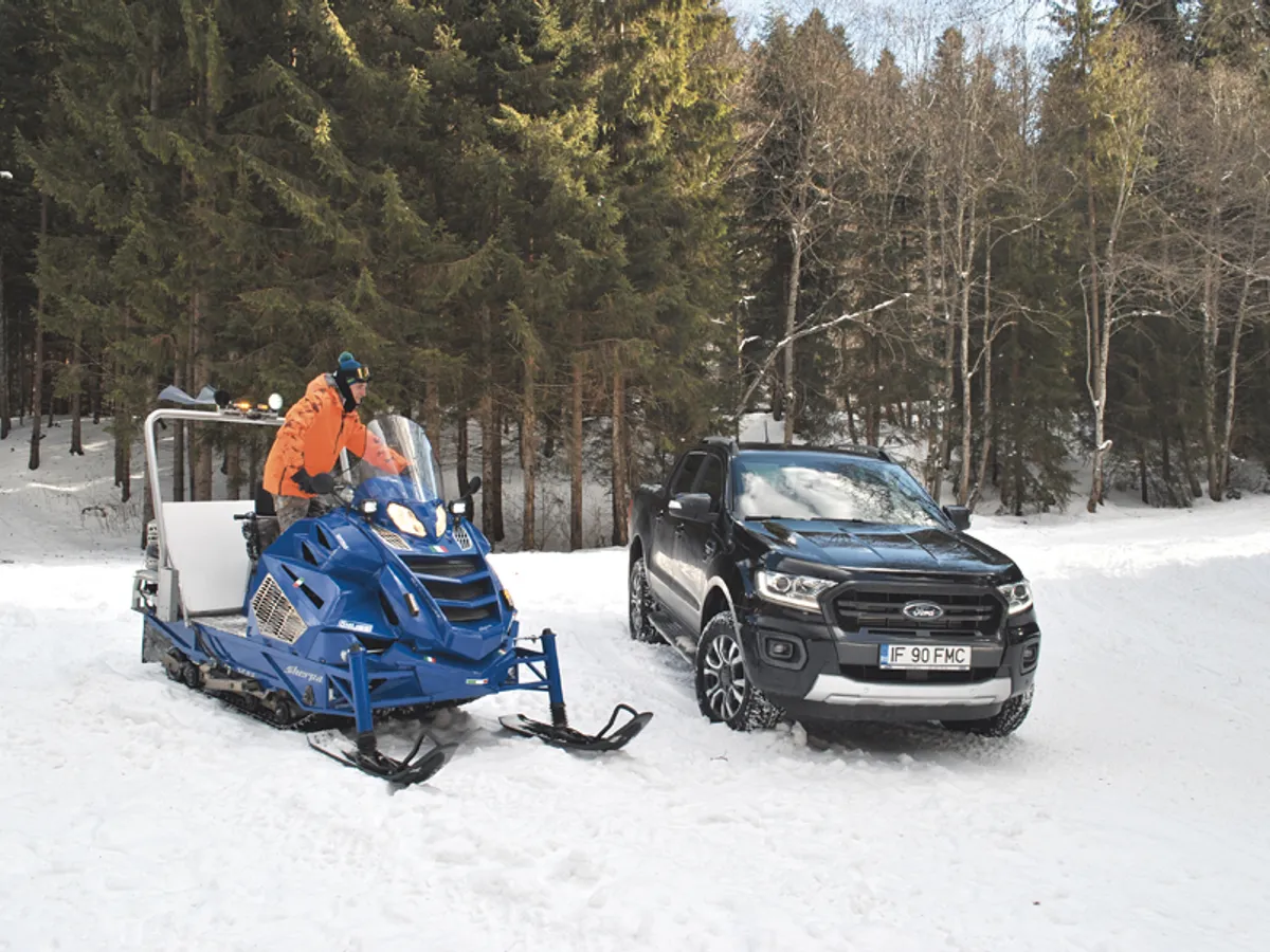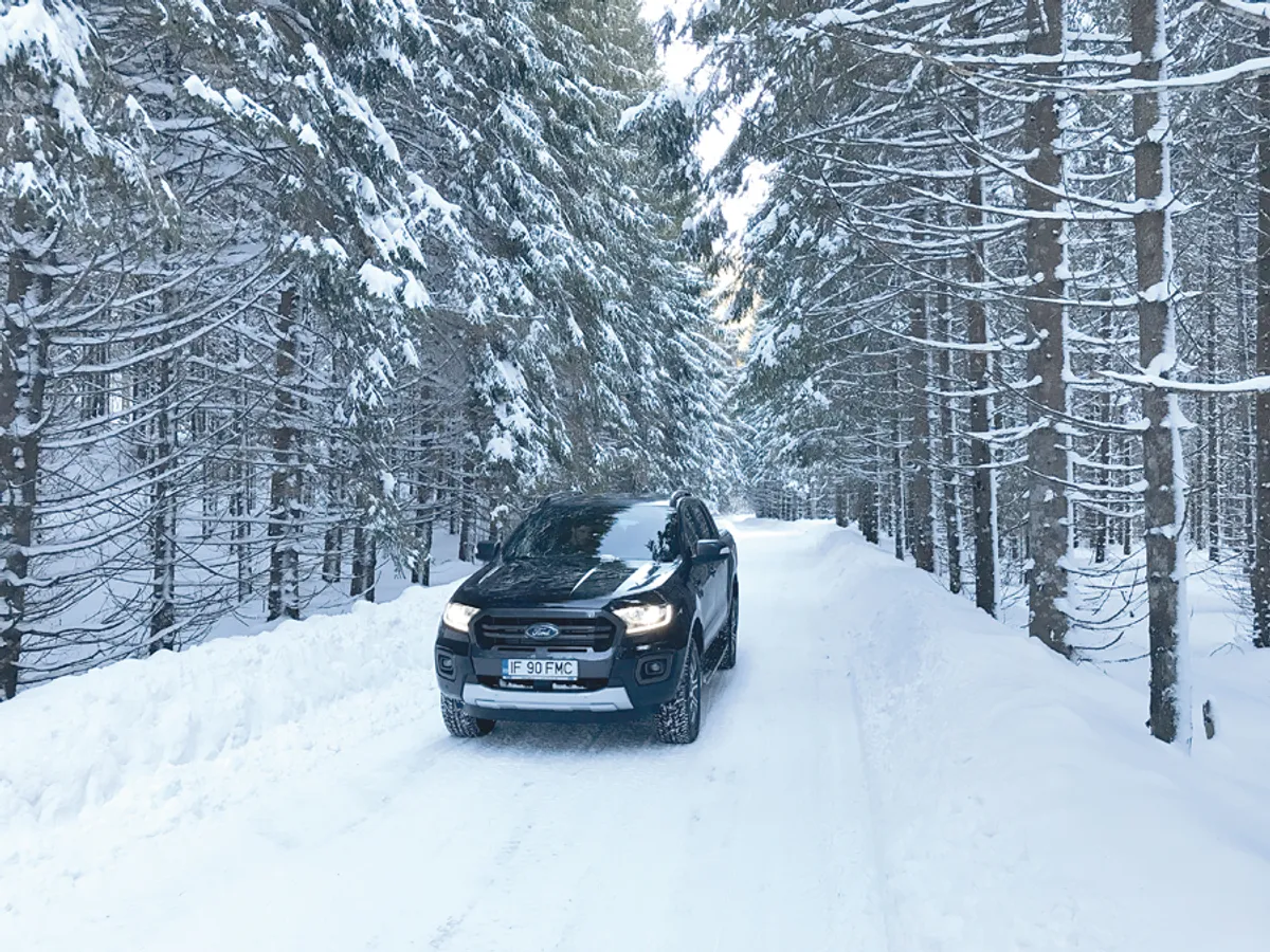 Primii kilometri, care fuseseră cât de cât deszăpeziți, i-am parcurs lejer, jucându-mă cu volanul și accelerația pentru a testa manevrabilitatea mașinii în condiții de drum alunecos și limitele de aderență. De la Vila Trifoiul, însă, pe drum nu mai trecuse decât un snowmobil, așa că Ranger-ul a intrat până la „brâu“ în zăpadă, adică zăpada necălcată depășea butucul roții.