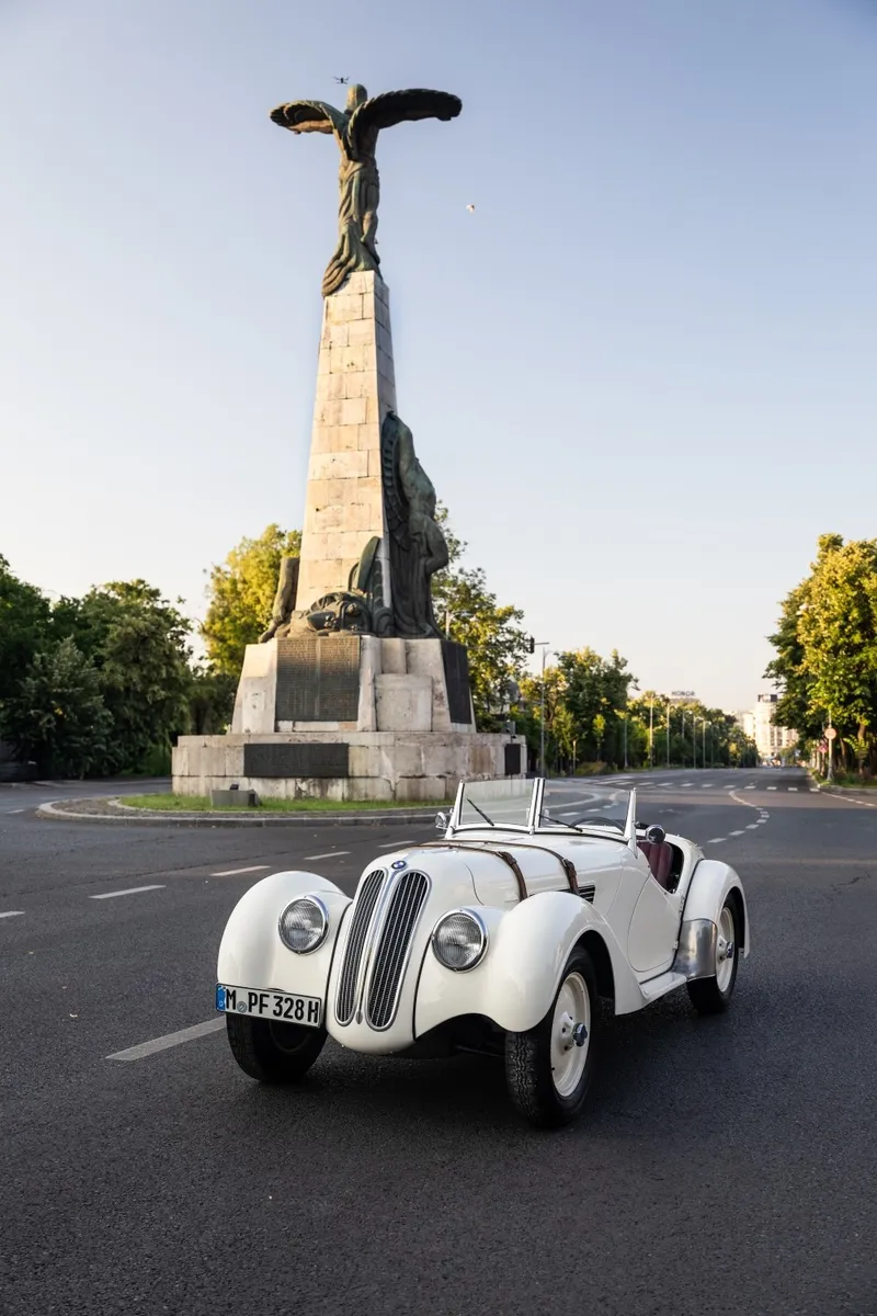 Același model de mașină - BMW 328, aceeași intersecție - rondul de la Statuia Aviatorilor. O fotografie cu un BMW 328 alb al echipei de uzină, cu numere de Germania, abordând rondul de la Statuia Aviatorilor în cadrul Grand Prix-ului Bucureștiului din 1937, subliniază „greutatea” cursei din capitala României la acea vreme pe plan european.