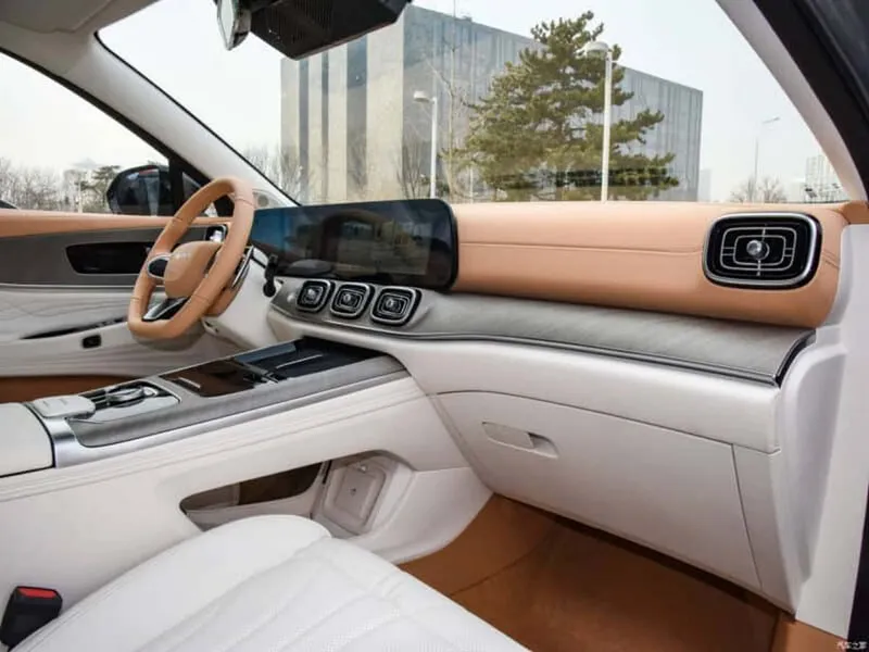 Habitaclul este oferit în două versiuni, cu 5 și 7 locuri, iar planșa de bord este dominată de un ecran curbat, cu două display-uri, ca la X5. Selectorul cutiei de viteze este la volan, ca la Mercedes.