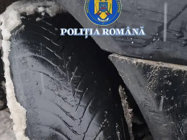 Cu ce cauciucuri de iarnă a plecat un român la drum! Mașina imobilizată de poliție, amendă 1.800 lei