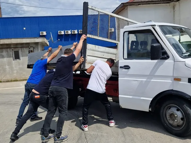 Cum nu se putea lua în calcul readmiterea în circulație a autovehiculului, proprietarul a mai făcut o ultimă încercare de a-i convinge pe colegii noștri că mașina funcționează corespunzător. Rezultatul tentativei de a bascula bena poate fi observat în fotografii, iar totul s-a transformat într-o acțiune comună pentru readucerea componentei într-o poziție de siguranță.