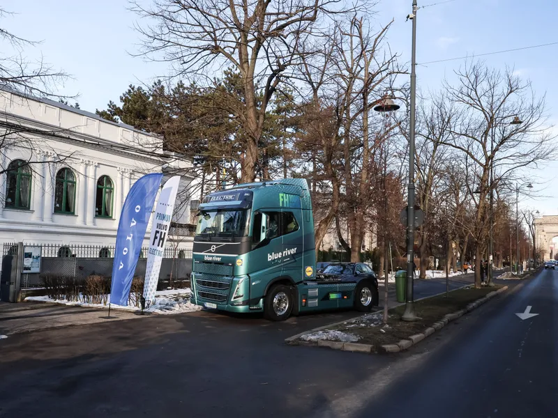 Ansamblul de transport Volvo FH Electric împreună cu o semiremorcă 100% electrică va fi folosit pentru livrări urbane și regionale, de la depozitele Lidl România, unul dintre principalii retaileri din țară, pentru care operează Blue River, la magazinele Lidl din zona de est a țării.