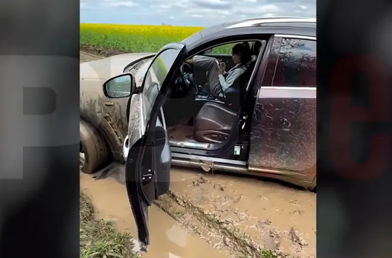 Cine i-a ajutat pe cei doi să iasă cu SUV-ul Infinity FX din noroi, nu se știe. Dar în imaginile postate pe rețelele de socializate se observă cum Anda Călin butonează telefonul, iar Liviu Vârciu iese din mașina să vadă ce a făcut și intră cu tenișii până la glezne în noroi.