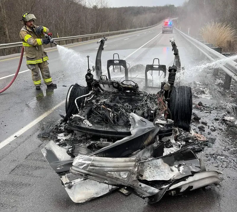„Din cauza bateriei litiu-ion a vehiculului, stingerea acestui incendiu a necesitat cisterne suplimentare, deoarece vehiculul continua să se reaprindă și să ardă”, a scris Morris Township Volunteer Fire Company pe pagina sa de Facebook. „În total, echipajele de pompieri au avut nevoie de aproape două ore pentru a pulveriza încontinuu apă pe vehicul, deoarece bateria a început să ia foc și a rămas la temperaturi ridicate”, au mai explicat aceștia, relatează turbo.fr.