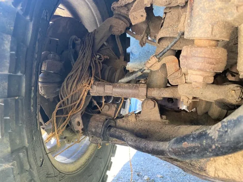 Pericol public! Proprietarul unui pick-up Mitsubishi L200 s-a prezentat la RAR pentru a face inspecția tehnică și a redobândi talonul mașinii cu întreaga articulație a unei roți legată cu o funie, sperând că inspectorii nu se vor prinde sau vor trece cu vederea.