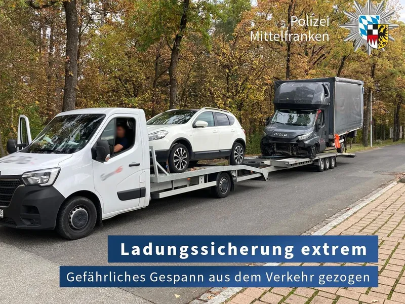 Un samsar român de mașini sau un șofer al unuia a luat amendă de 10.000 € în Germania, după ce poliția a tras pe dreapta un ansamblu auto cu numere de România și a constatat că depășea gabaritul permis, iar „marfa” nu era asigurată corespunzător.