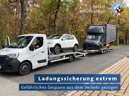 Polițiștii germani au constatat că autoutilitara Iveco transportată pe remorcă depășea înălțimea admisă cu 26 de centimetri și lățimea admisă cu aproximativ 50 de centimetri.