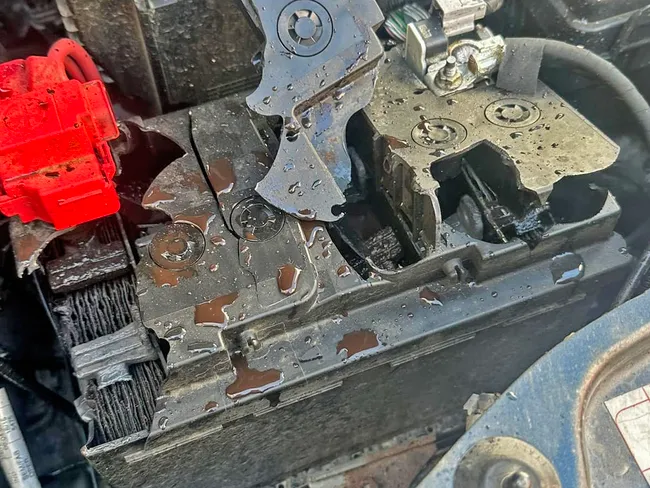 Un membru al comunității „Dacia Duster Trails & Technical” de pe Facebook a postat imagini cu bateria de 12V a mașinii sale Dacia Duster, fabricație 2016, explodată, cu carcasa spartă și acidul curs peste tot.