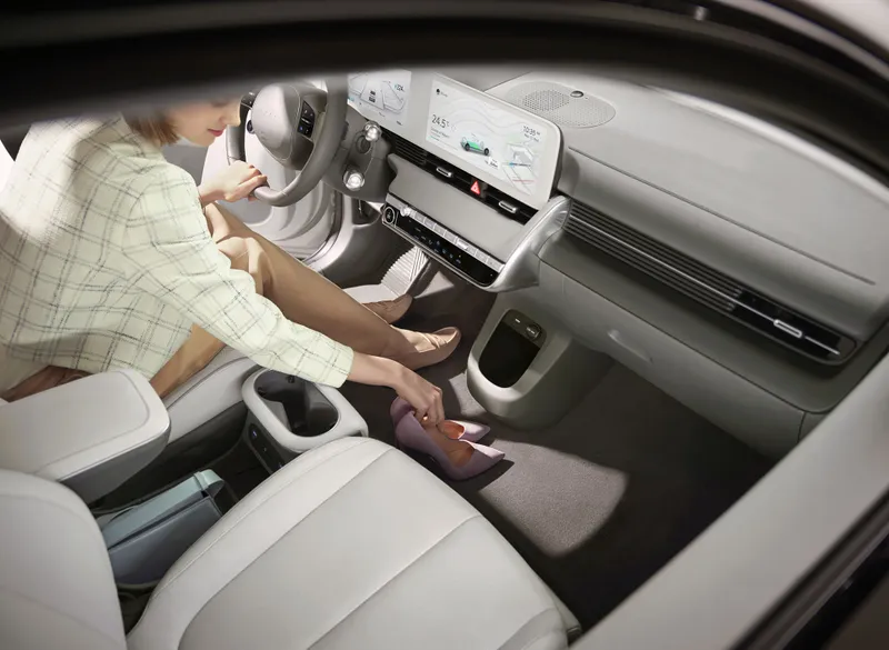 Ioniq 5 nu este spectaculos doar din exterior, ci și în interior. „Hatcho-SUV”-ul este animat de un sistem electric de 800 de volți, ca Porsche Taycan, și, atenție, se poate încărca la stații ultrarapide cu până la 350 kW. Bine, deocamdată, astfel de stații publice nu prea există, dar mașina poate.