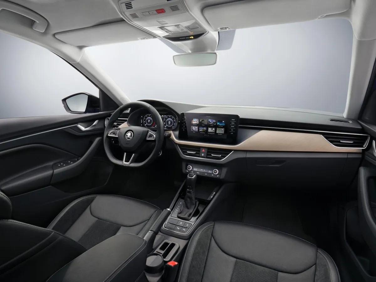 În primul rând, cu un exterior care stârneşte dorinţa. Detalii distinctive, precum grila radiatorului şi farurile în formă de săgeată, liniile cursive şi proporţiile echilibrate fac ca maşina să iasă în evidenţi şi să radieze dinamism, aşa cum este şi cazul noii Škoda Scala. De asemenea, am transferat această primă impresie vizuală şi la interior. Panoul de instrumente reflectă liniile exteriorului, accentuând sentimentul de spaţiu vast, specific modelelor Škoda. Display-ul central, aşezat în poziţie ridicată, în câmpul vizual al şoferului, dă naştere unei simetrii plăcute. Totodată, ecranul tactil cu finisajul său de sticlă şi poziţionarea sa liberă, generează un look foarte modern, sugerând calitate superioară.