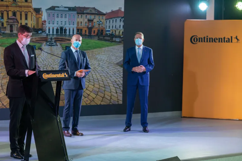 ”Îmi face plăcere să fiu astăzi aici, pentru a celebra împreună aniversarea a 20 de ani de prezență a Continental în România. Felicit conducerea companiei pentru modul în care a înțeles să ofere, de-a lungul timpului, oportunități de dezvoltare și de investiții, atât în plan local, cât și pentru economia noastră. Interesul constant pentru dezvoltare v-a propulsat în rândul celor care dau tonul în industrie și redefinesc viitorul mobilității. Acum, sunteți unul dintre cei mai mari exportatori ai economiei românești. Aveți peste 20.000 de angajați din țara noastră, dintre care o treime sunt ingineri și specialiști IT în centrele de cercetare și dezvoltare. Sunteți un partener constant în educația profesională pentru tinerele generații”, a declarat Klaus Iohannis în cadrul evenimentului.