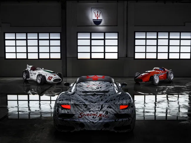 Pe de altă parte, dezvoltarea prototipului MC20 dedicat lui Sir Stirling subliniază vocația sportivă a Maserati și planurile constructorului să revină la rolul de lider pe circuitele de curse, după cel mai recent campionat mondial câștigat în 2010 cu o altă mașină extraordinară, MC12. Lista modelelor Maserati pilotate de Moss include Tipo 60 Birdcage, Tipo 61 și 300 S.