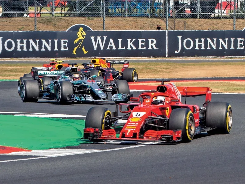 Germanul de la Ferrari a pus piciorul în Marea Britanie, în cursa care a marcat jumătatea campionatului, cu un singur punct avans în fața britanicului de la Mercedes, aflat în „Pole position“. Hamilton a plecat, însă, prost, învârtind roțile în loc. Vettel a țâșnit de pe doi și, până în primul viraj, i-a luat fața și coechipierului său Valtteri Bottas. Apoi, pentru ca lucrurile să devină și mai complicate, până la finalul primului tur, Hamilton a fost învârtit în cadrul unui duel de Kimi Raikkonen și a reintrat în pistă pe ultima poziție. Până în turul 12, însă, Lewis Hamilton a revenit spectaculos până pe 6. Iar, la final, a terminat pe 2, în spatele lui Vettel, profitând și de neutralizarea ecarturilor în urma celor două intrări ale Safety Car-ului, în tururile 32 și 38.