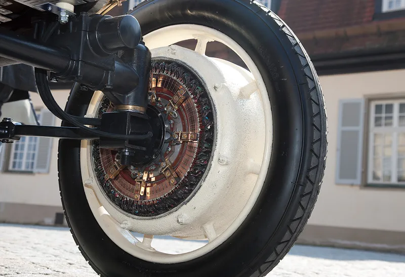 Cele două motoare electrice dispuse în butucii roților, care asigurau practic propulsia, dezvoltau 2,5 cai putere fiecare și lucrau la o tensiune de 90V.