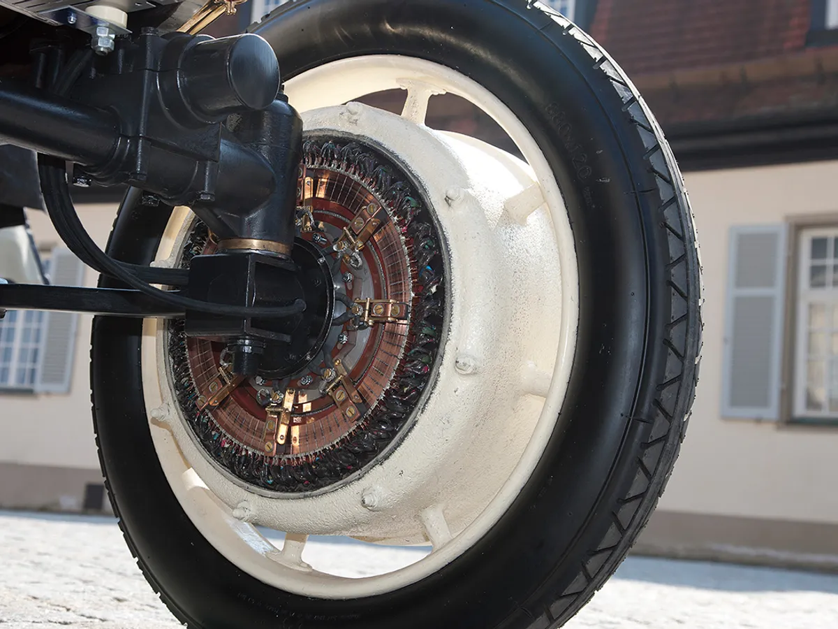 Povestea primei mașini hybrid, „Semper Vivus“: Prezentată de Porsche în 1900, avea motor electric înglobat în butucul roții