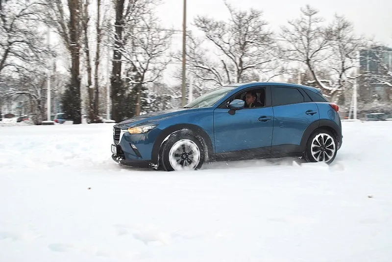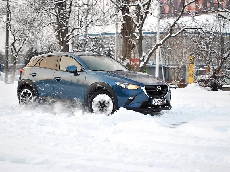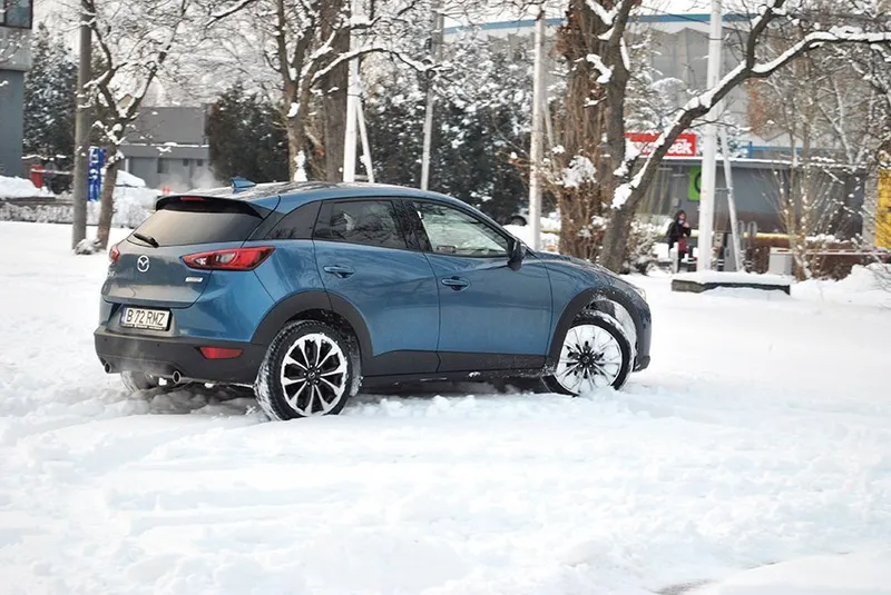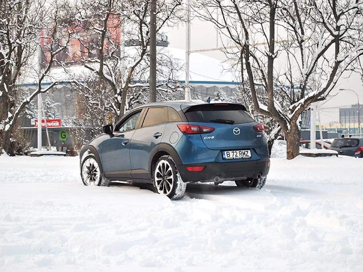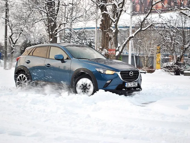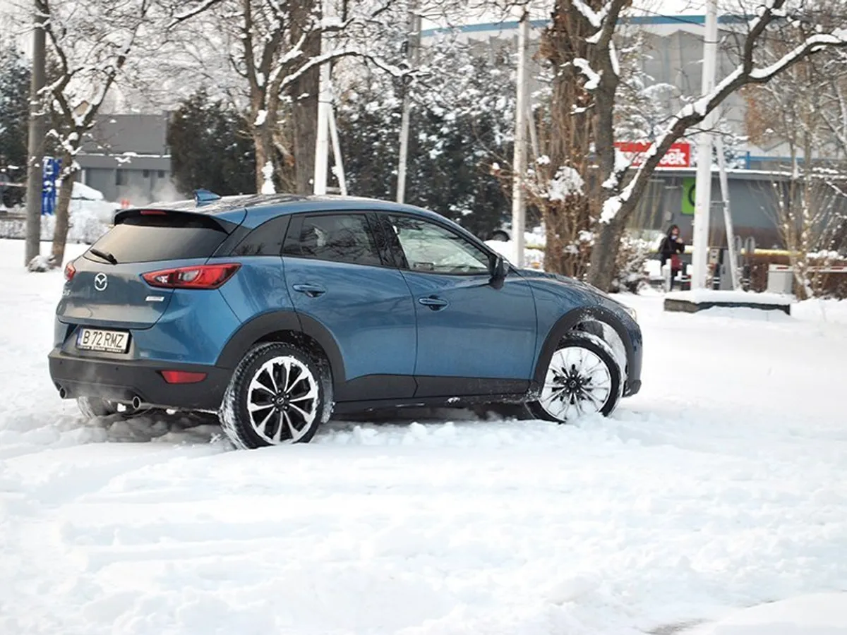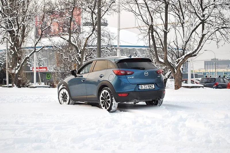 În ciuda cilindreei mari, hulite în ultimul timp de majoritatea producătorilor, benzinarul Mazda nu a sărit de 8,8-9,0 l/100 km iarna în traficul „liniștit“ din București, plus puțină joacă prin zăpadă, pentru a vedea dacă garda la sol de 154 mm (Dacia Sandero are 132 mm) ajută sau nu crossover-ul. Răspunsul este da, nu rămâi suspendat prea repede, deși mașina testată nu avea 4x4.