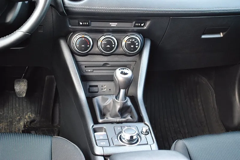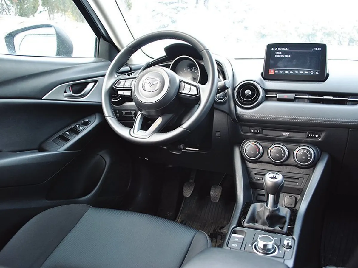 Habitaclul a rămas la fel, chiar dacă ar fi fost loc de mai bine, cel puțin la nivelul design-ului mult prea cuminte în raport cu exteriorul, dar pasagerii CX-3-ului facelift beneficiază de tapițerii și materiale noi pe bord, pe panourile portierelor și la mânere. Frâna de parcare clasică a lăsat locul uneia acționate electric, iar consola centrală integrează și o cotieră, pentru mai mult confort.
