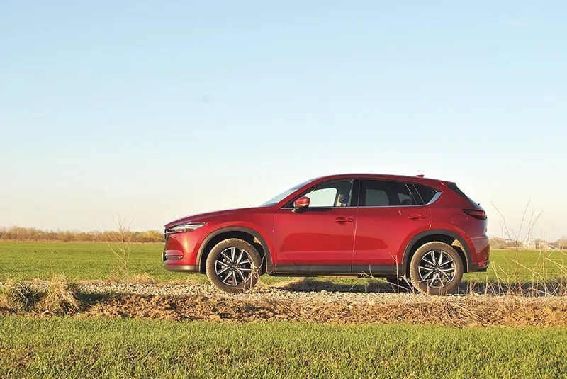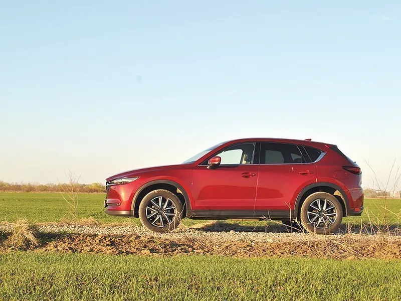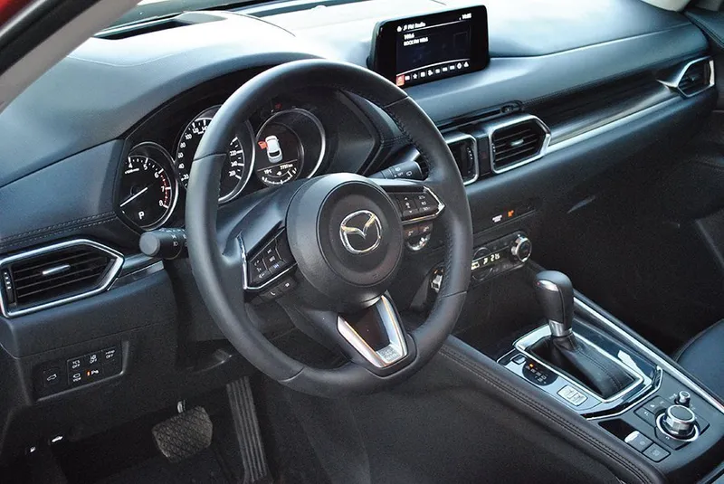 Viața la bordul versiunii de top a SUV-ului CX-5 bate puțin spre premium. Calitatea materialelor și a finisajelor este bună, iar design-ul curat, pielea de pe scaune și cea întinsă pe planșa de bord și pe fețele ușilor creează o atmosferă aparte. Sigur, există și zone mai dure, dar sunt bine ascunse.