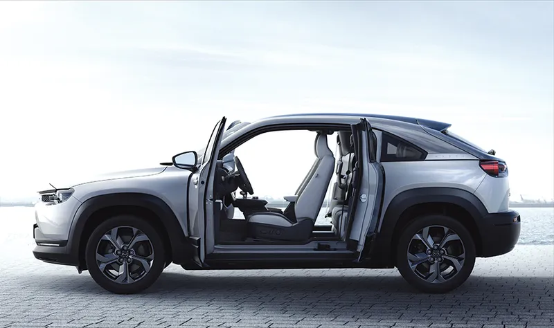 MX-30 a intrat cu stil pe piață cu un design de coupé, distribuție ideală a maselor, „suicide doors“, ca la RX-8, și o autonomie electrică de până la 200 de kilometri.