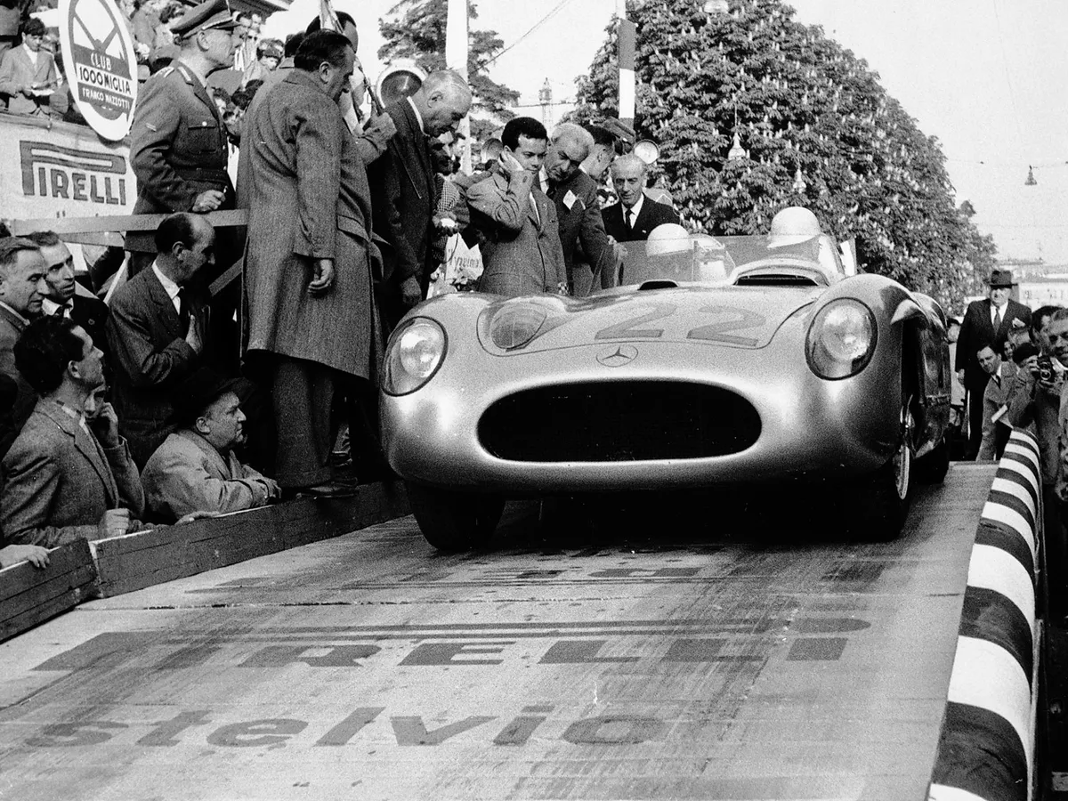 Cel mai important rezultat din cariera lui Sir Stirling Moss a fost victoria din 1955 în faimoasa cursă pe drumuri publice Mille Miglia. Moss și navigatorul său, jurnalistul Denis Jenkinson, au parcurs cele 993 de mile ale traseului din acel an în 10 ore și 7 minute. Viteza medie? 157,7 km/h, un record ce nu a fost depășit până în prezent.