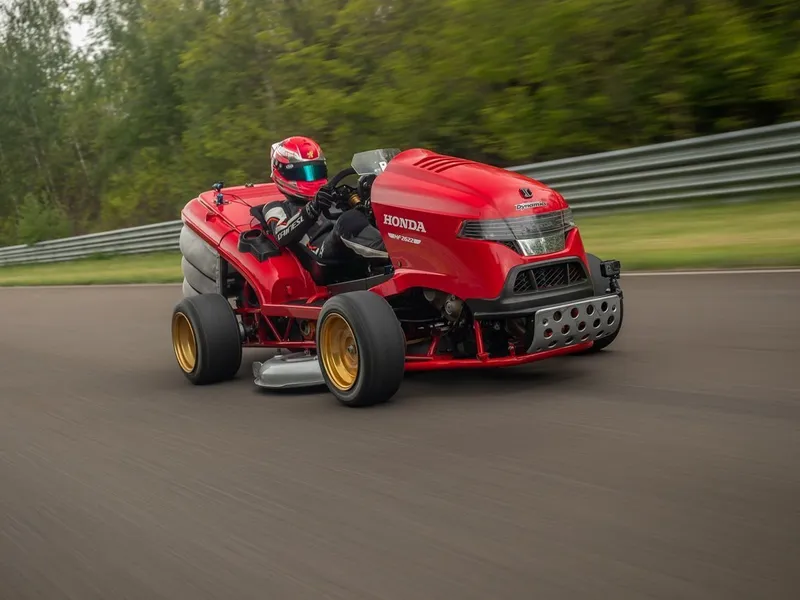 Honda a doborât recordul mondial de viteză al mașinilor de tuns iarba. Mașinăria Mean Mower V2 a atins 242,99 km/h și a înregistrat și cea mai puternică accelerație.