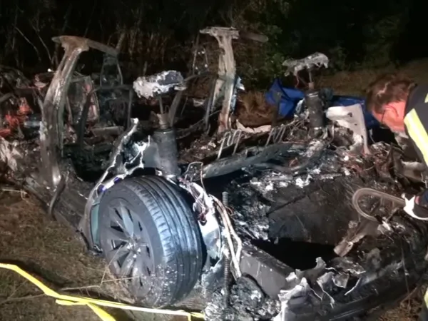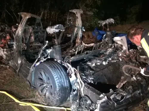 O Tesla a ieșit de pe șosea, s-a oprit într-un copac și a luat foc: doi morți, 99,9% nimeni la volan