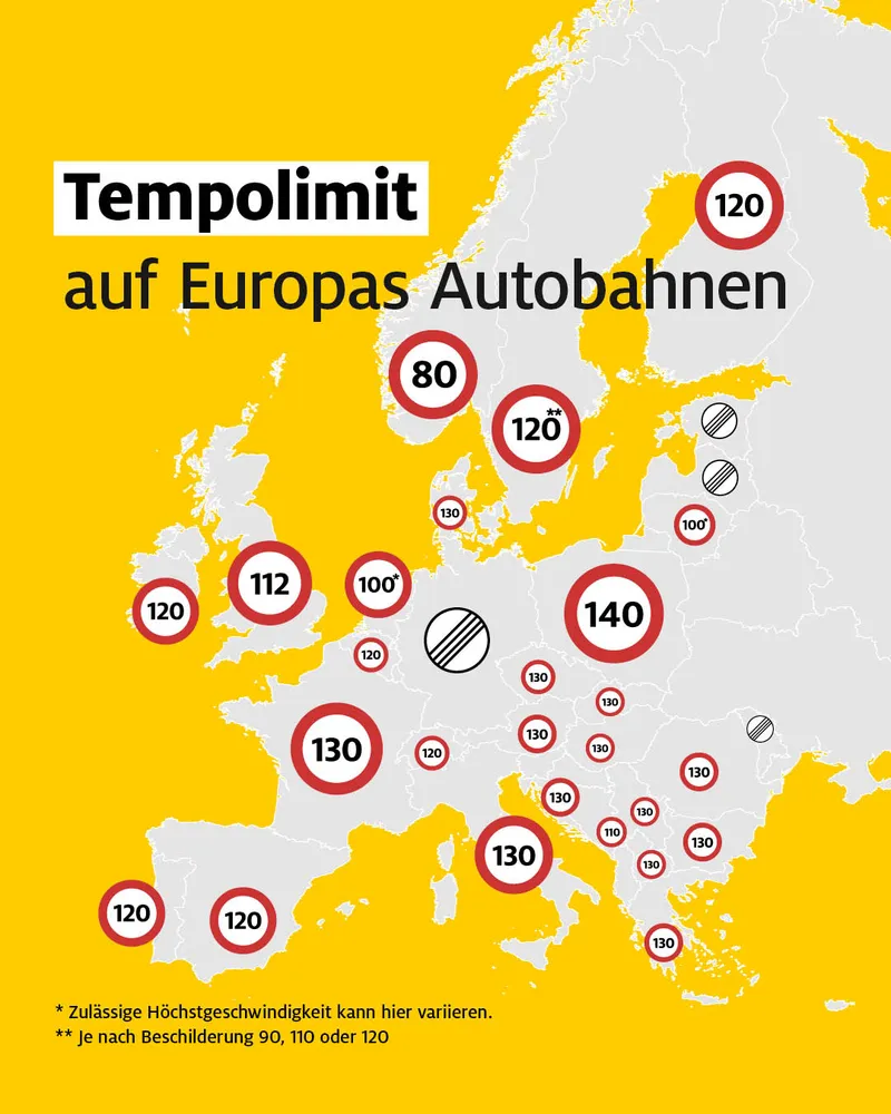 Limita legală de viteză pe autostradă diferă mult de la o țară la alta în Europa. Dacă Germania e singura țară de pe „bătrânul continent” unde poți merge pe autostradă cu cât poate mașina (atenție, însă, fiți atenție la semne și panourile pentru mesaje dinamice de pe autostrăzi, pentru că în anumite zone sau pe anumite porțiuni există limite sau se impun în funcție de dinamica traficului), în Marea Britanie iei amendă dacă depășești 112 km/h, iar în Cehia sunt porțiuni de autostradă unde poți rula cu 150 km/h.