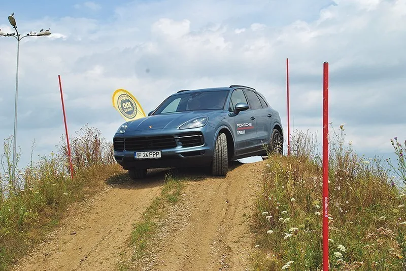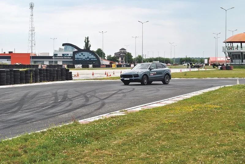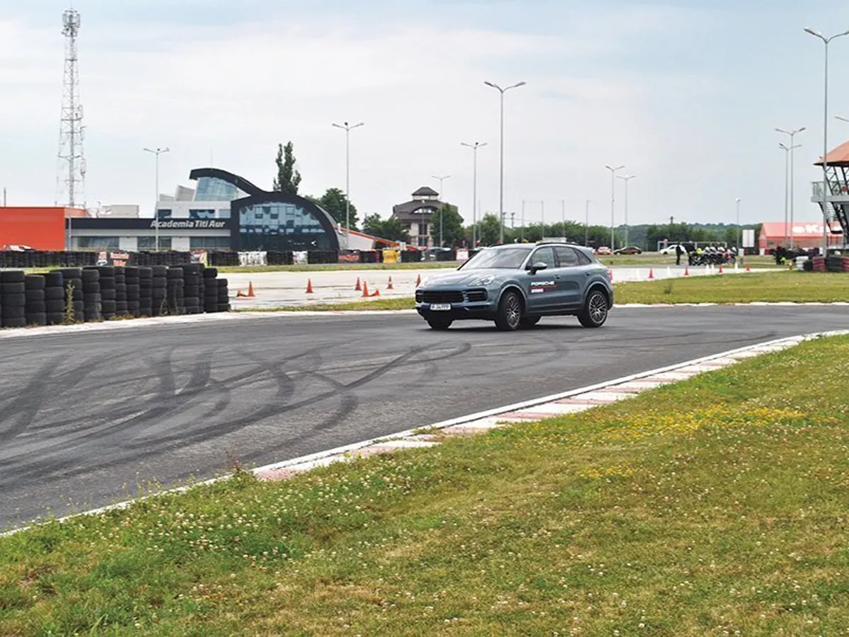 Cum entry-level-ul Porsche Cayenne testat de Newsweek România dispune de un motor turbo pe benzină de 3.0 litri, care dezvoltă 340 de cai putere, între 5.300 rpm și 6.400 rpm, și un cuplu maxim de 450 Nm, între 1.340 rpm și 5.300 rpm, oferă un unghi de atac de 25,2 grade și un unghi de degajare de 22,1 grade și sprintează până la 100 km/h în 6,2 secunde (valoare garantată de sistemul „Launch Control“), am decis să ducem SUV-ul de peste două tone la Academia Titi Aur, unde există o pistă de asfalt desenată tehnic și frumos și un circuit off-road destul de solicitant.