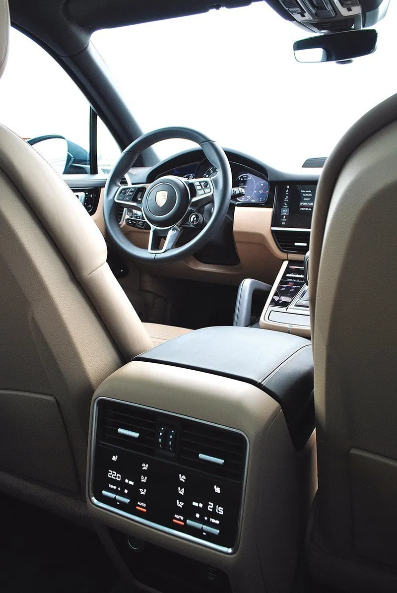 Cum îi stă bine unui Porsche, planșa de bord a Cayenne-ului este îmbrăcată în piele, plasticele sunt moi și plăcute la atingere, iar habitaclul este decorat cu fel de fel de ornamente din aluminiu. Trapa panoramică conferă un plus de „bien-être“. Iar spațiul este extrem de generos.