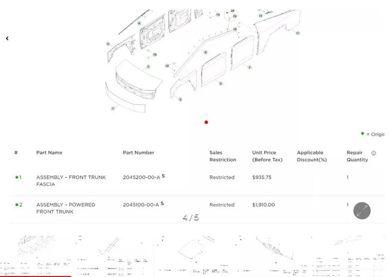 Capota față, frunk-ul, costă 1.910 $, iar restul panoului frontal, 935 $.