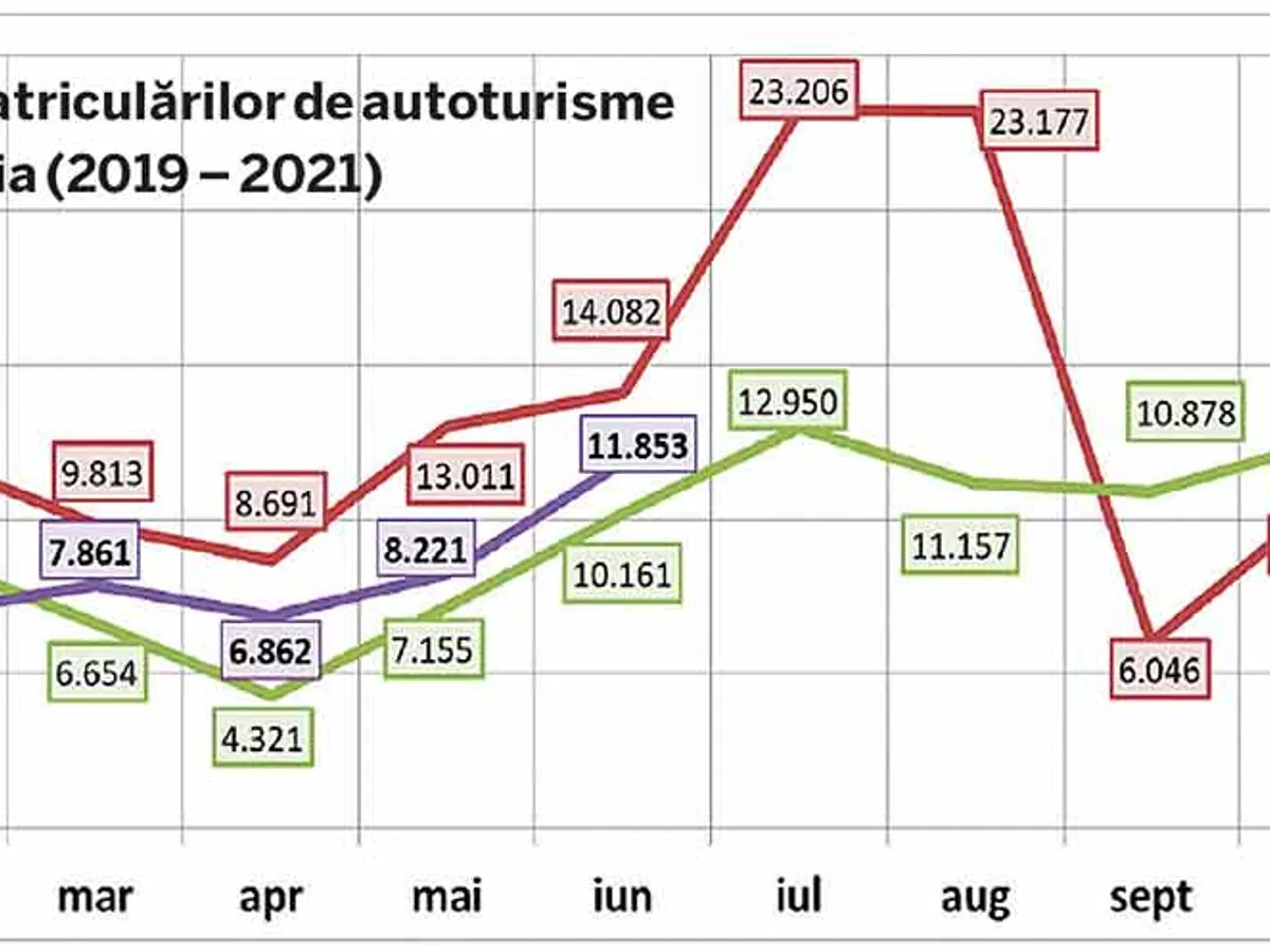 În iunie 2019, însă, în România au fost înregistrate 14.082 automobile noi. Ceea ce înseamnă că, față de „normalitate“, în iunie 2021 înmatriculările au scăzut cu peste 15%.