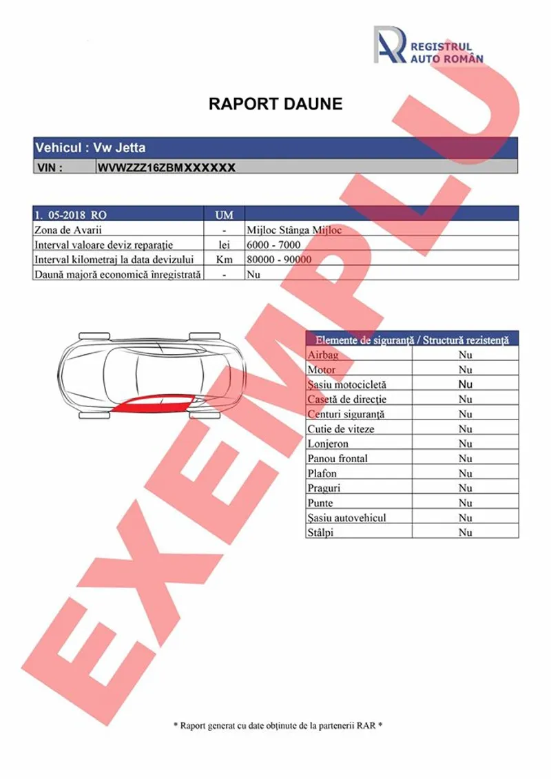 Istoricul de daune furnizat este realizat pe baza informaţiilor pe care le primeşte RAR de la partenerii specializaţi care colectează date de la societăţile de asigurare şi atelierele de reparaţii autorizate. Prin urmare, dacă avaria și repararea vehicului nu au fost înregistrate, RAR nu are ce să comunice.