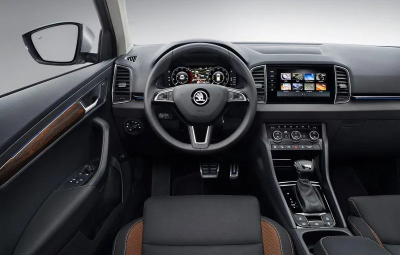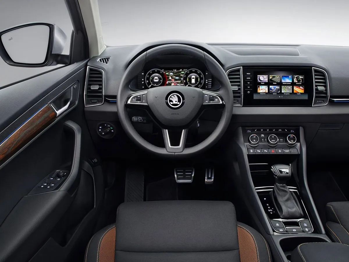 Skoda Karoq Scout, singura variantă a SUV-ului compact disponibilă exclusiv cu tracţiune integrală, se remarcă la exterior prin detaliile cromate şi argintii ale caroseriei, pasajele roţilor cu protecții şi jantele din aliaj Braga sau Crater, de 18 inch și, respectiv, 19 inch. La interior, scaunele sunt acoperite cu tapiţerii cu model nou, cu cusături negre/maro contrastante, brodate cu logo-ul ”Scout”. Iar volanul multifuncțional îmbrăcat în piele, pedalierul cu elemente din oţel inoxidabil şi pachetul LED, incluzând iluminarea ambientală completează dotarea standard.