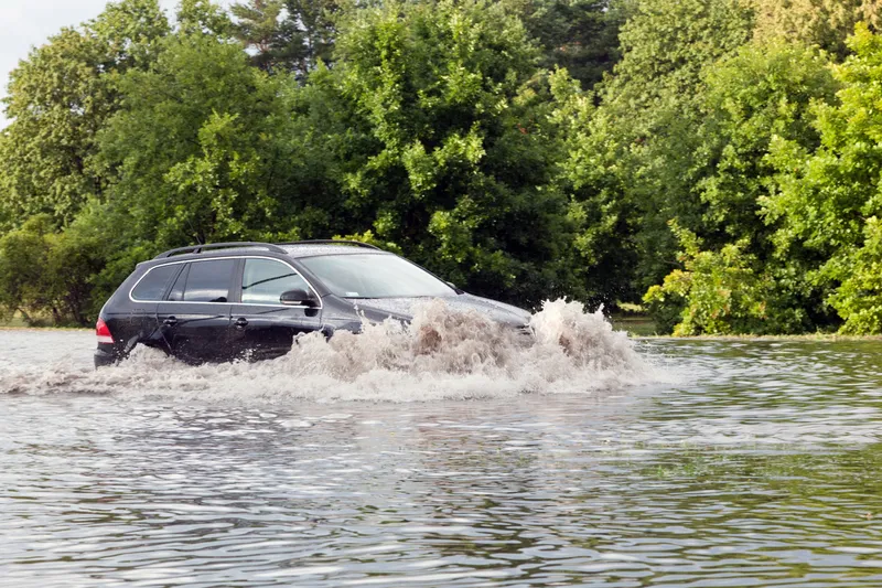 - Ocoliți! Nu conduceți niciodată prin apă adâncă, care curge repede și nu conduceți pe drumuri inundate dacă le puteți evita. Este mai bine să lungiți călătoria cu 10-15 minute, decât să riscați ca motorul și instalația electrică a mașinii să fie distruse.