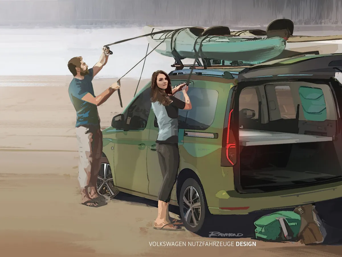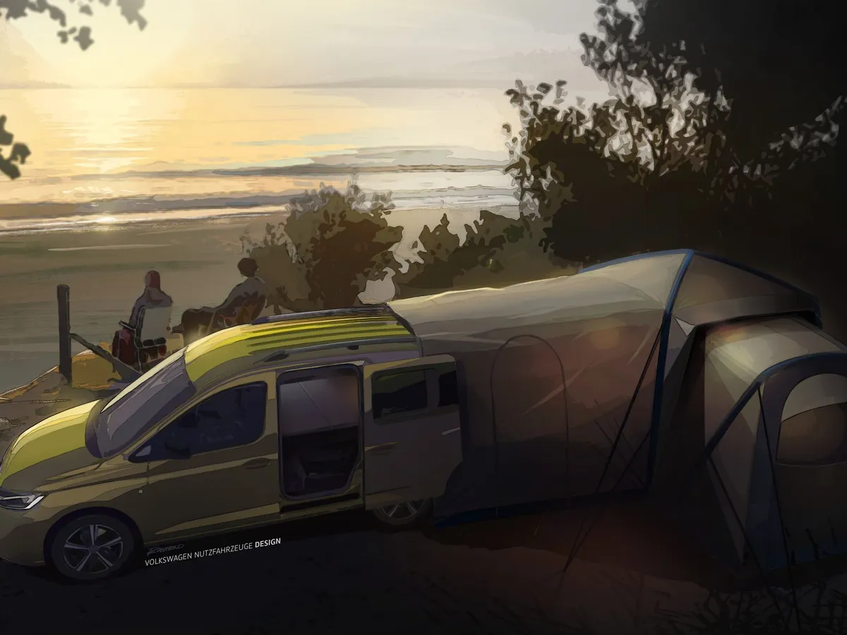 Fără nicio legătură cu lifestyle-brand-ul britanic MINI, Vokswagen pregătește noua utilitară compactă Caddy pentru aventuri sub clar de lună și a publicat primele schițe ale modelului Mini-Camper, urmașul lui Caddy Beach.