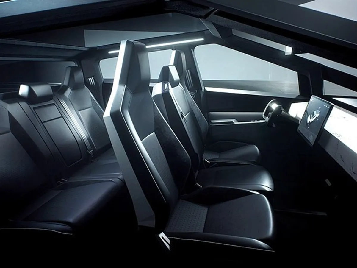 Capacitatea de tractare a celei mai puternice versiuni Cybertruck, cu trei motoare electrice, ajunge la 6,35 tone. Iar din singura imagine din habitaclu disponibilă, se observă că Cybertruck respectă arhitectura tradițională a pick-up-urilor americane, oferind trei locuri în față și, bineînțeles, trei în spate, țintind direct vedetele pieței auto americane, Ford F-150, Chevrolet Silverado și Dodge Ram.