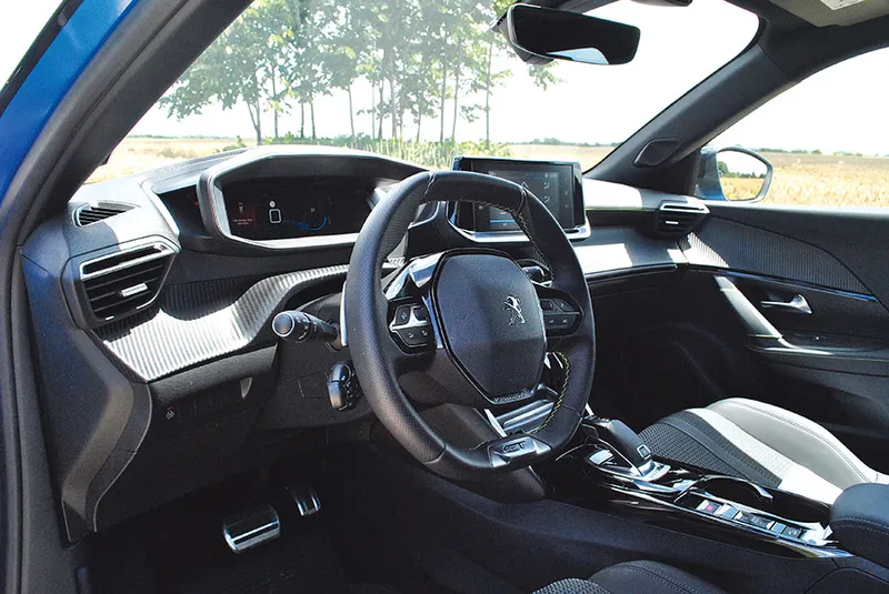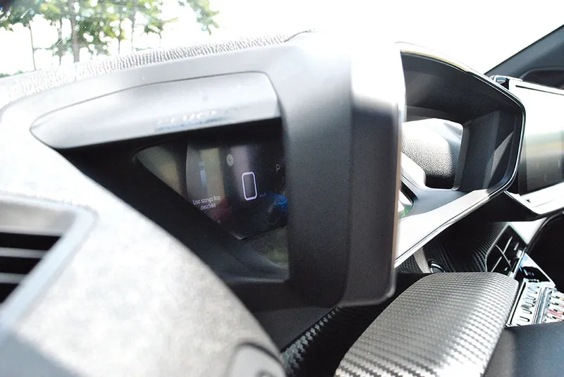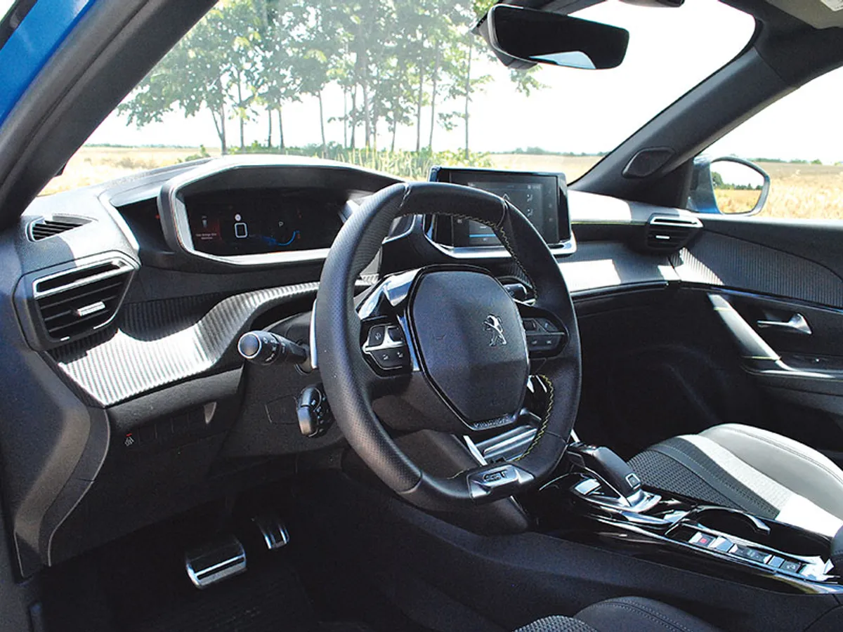 Ca și la alte Peugeot-uri, volanul mic și teșit, ca de PlayStation, necesită un timp de adaptare. Iar controller-ul tip manetă pentru pilotul automat, tipic Peugeot, pe care nu-l poți acționa în siguranță pe autostradă decât ghicind pe pipăite, este la locul lui, de parcă francezii ar avea ochi în buricele degetelor.