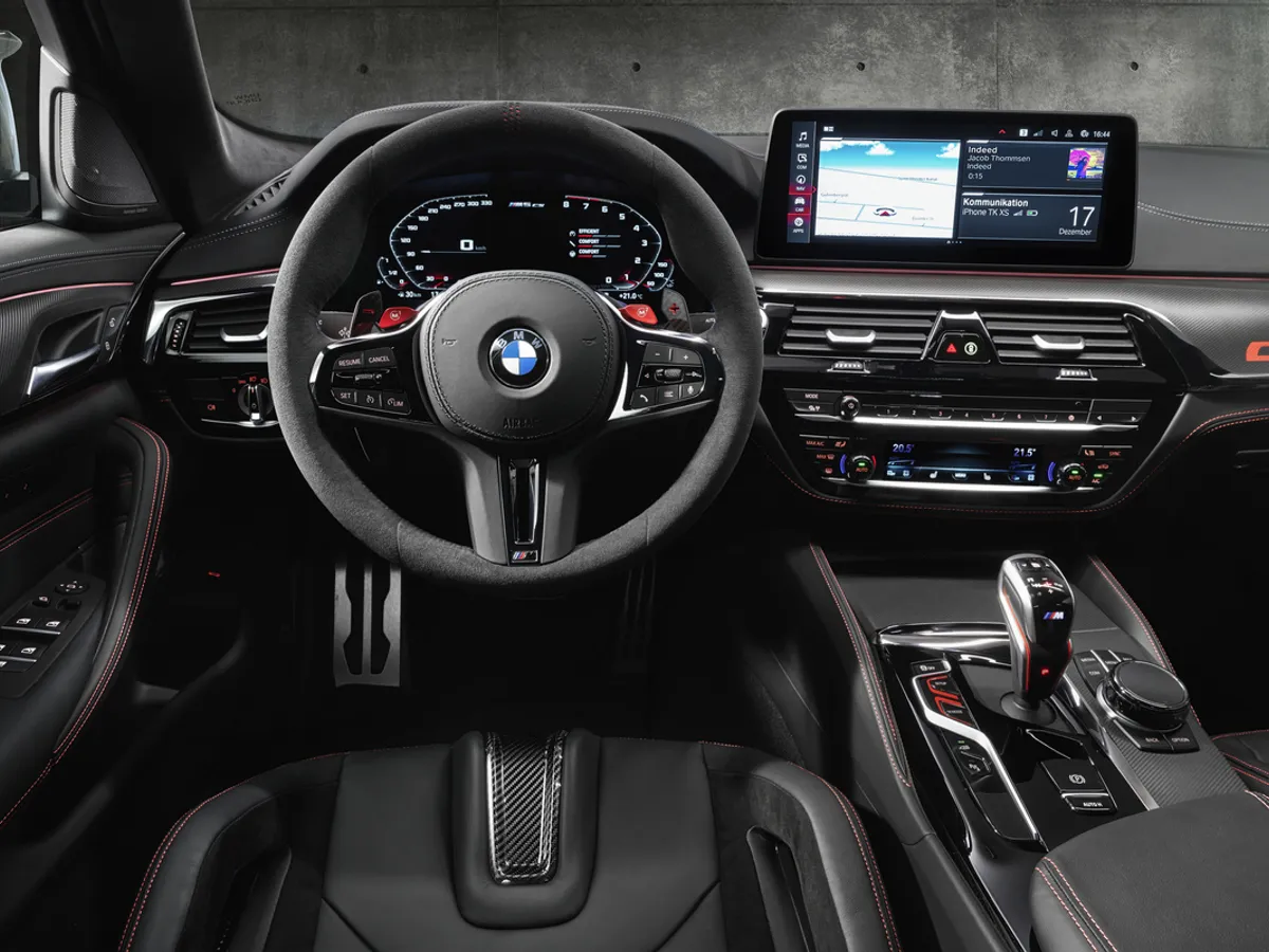 Activarea modului „SPORT” la BMW M5 CS aduce M View atât pe panoul de instrumente, cât şi pe Head-Up Display. În acest caz, pe displayul de 12,3 inch sunt afişate doar informaţiile relevante pentru condus sportiv - adică un cadran al turaţiilor specific M, indicatorul luminos pentru schimbarea treptei de viteză, o afişare digitală a vitezei şi treapta de viteză cuplată.