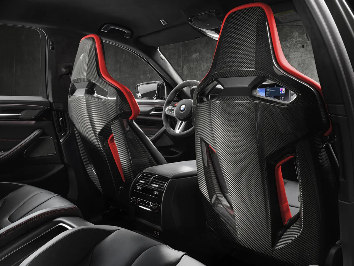 Frânele M din carbon ceramic sunt mai uşoare cu 23 de kilograme decât frânele M Compound de la BMW M5 Competition şi se disting printr-o reducere suplimentară a maselor nesuspendate şi de rotaţie, ale căror avantaje includ o dinamică de condus şi un confort al suspensiei sporite. Aceste frâne oferă performanţe şi mai bune, rezistenţă îmbunătăţită suplimentar şi stabilitate termică mai mare. Şi rezistă excepţional de bine la uzură.