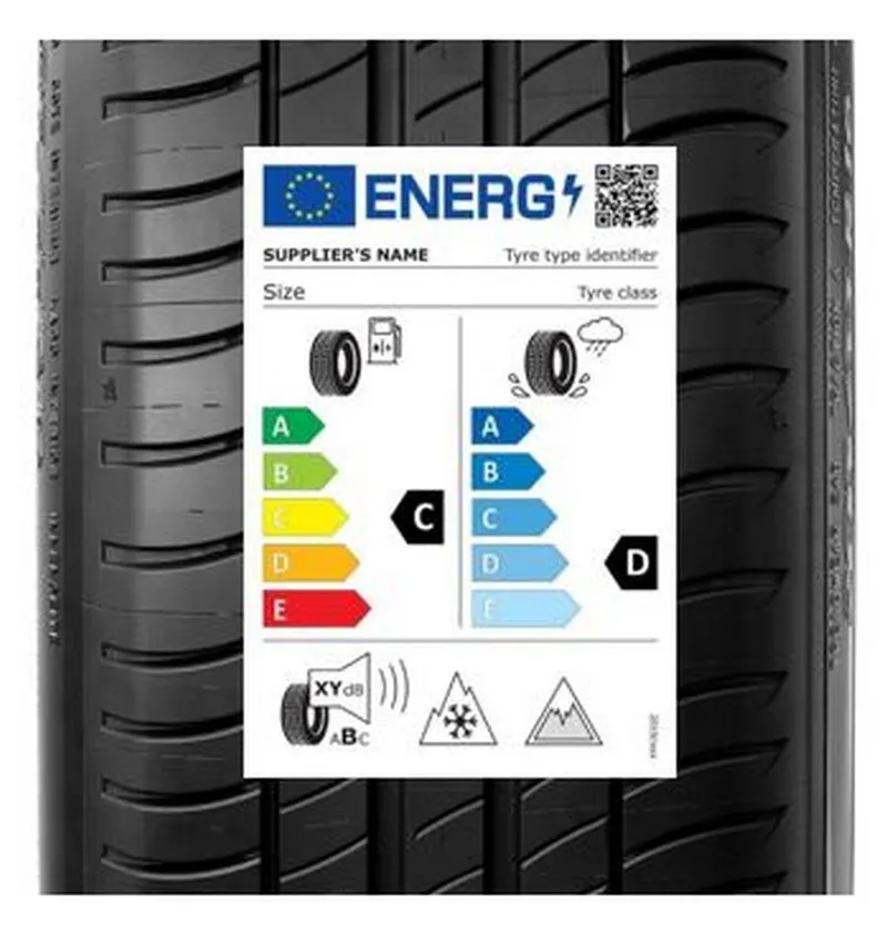 Această etichetă aduce în atenția utilizatorilor informații privind clasa de eficiență a pneului din punct de vedere al consumului de combustibil, clasa de performanță privind aderența pe teren umed, clasa de zgomot exterior de rulare precum și aderența pe zăpadă sau gheață, pentru pneurile destinate acestor condiții de rulare.