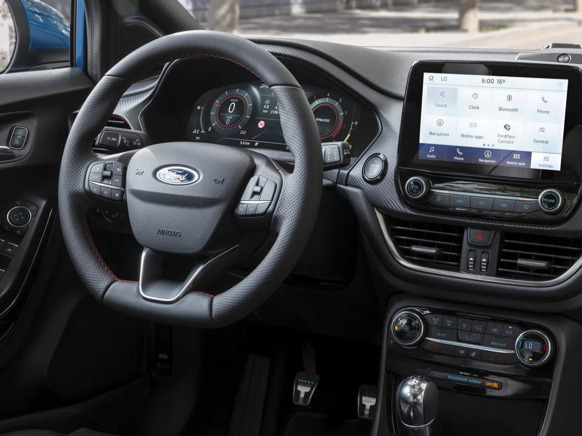 În interior, Puma ST-Line dispune de un volan cu baza teșită și cusături roșii – disponibile inclusiv pe scaunele mixte piele-textil, disponibile opțional. Pedalierul din aliaj, schimbătorul de viteze din aluminiu și căptușeala neagră tipică ST Line sporesc caracterul sportiv.