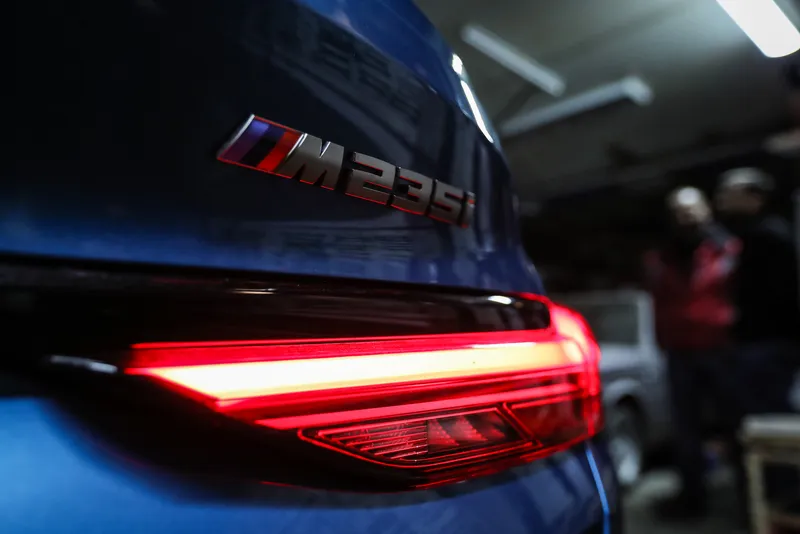 Un identificator vizual exclusiv al vârfului de gamă sportiv - BMW M235i xDrive - este designul atractiv al grilei, cu un girlaj tridimensională pronunţat în locul barelor clasice. Designul este inspirat de la maşinile de curse şi aduce părţii frontale un plus de dinamism. De asemenea, prizele de aer exterioare sunt mai mari la BMW M235i xDrive, ca o confirmare vizuală pentru puterea modelului dar şi pentru a asigura performanţele de răcire necesare.