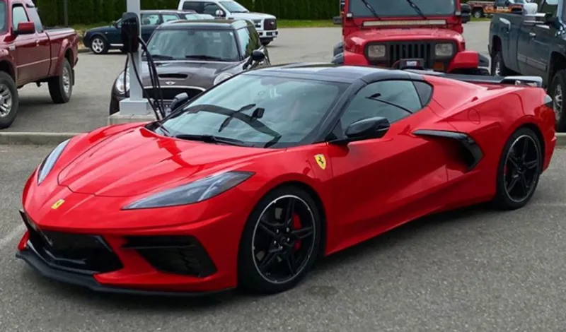 Visând, probabil, la o italiancă cu pedigree, proprietarul unui Corvette de ultimă generație și-a transformat C8-ul într-un Ferrari, înlocuind siglele și înscrisurile de pe mașină. Cel puțin de la distanță, iluzia este aproape perfectă.
