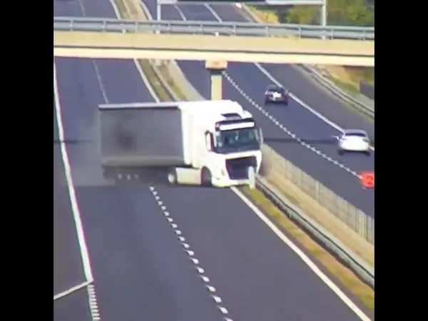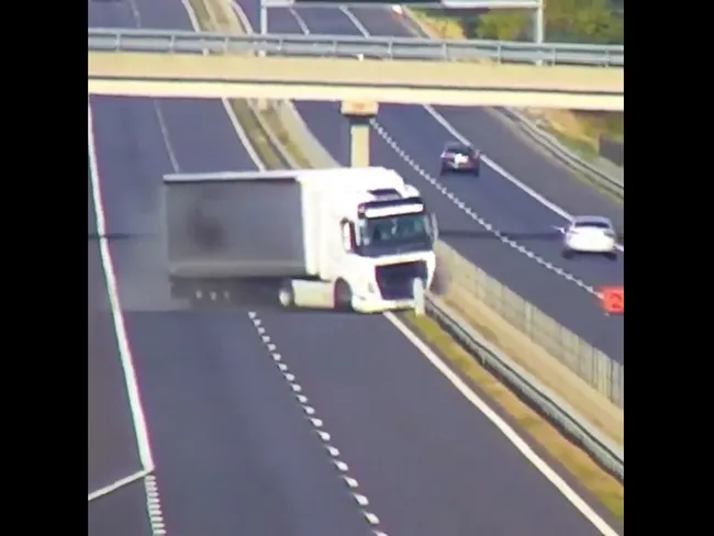 VIDEO Ce se întâmplă când explodează cauciucul unui TIR în viteză. Ungurii dau exemplu un român