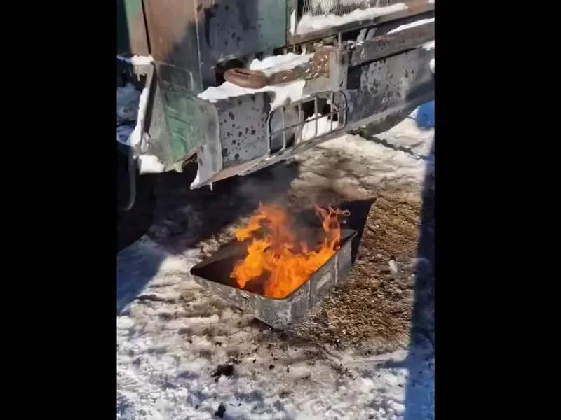„Tehnica” de pornire la rece? Foc sub baia de ulei și încălzirea filtrelor și admisiei motorului cu feștila.