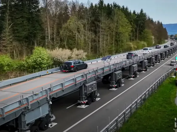 Drumarii din „Țara cantoanelor” folosesc „Astra Bridge”, un fel de pod modular mobil, pentru a repara și asfalta unele șosele și autostrăzi fără a devia sau perturba traficul în niciun fel.