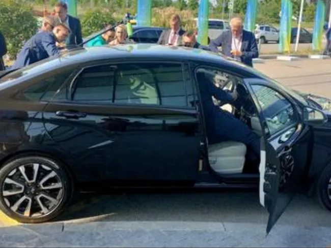 Oligarhul Gherman Gref a fost primul care s-a urcat la volan. A apăsat butonul de start, dar mașina nu a reacționat. A mai apăsat de câteva ori, apoi a încercat să vadă dacă nu cumva mașina e blocată din cheie, dar Lada Aura tot n-a vrut să pornească.